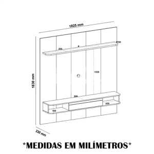 Espaço livre para TV: L 180 cm X A 114 cm