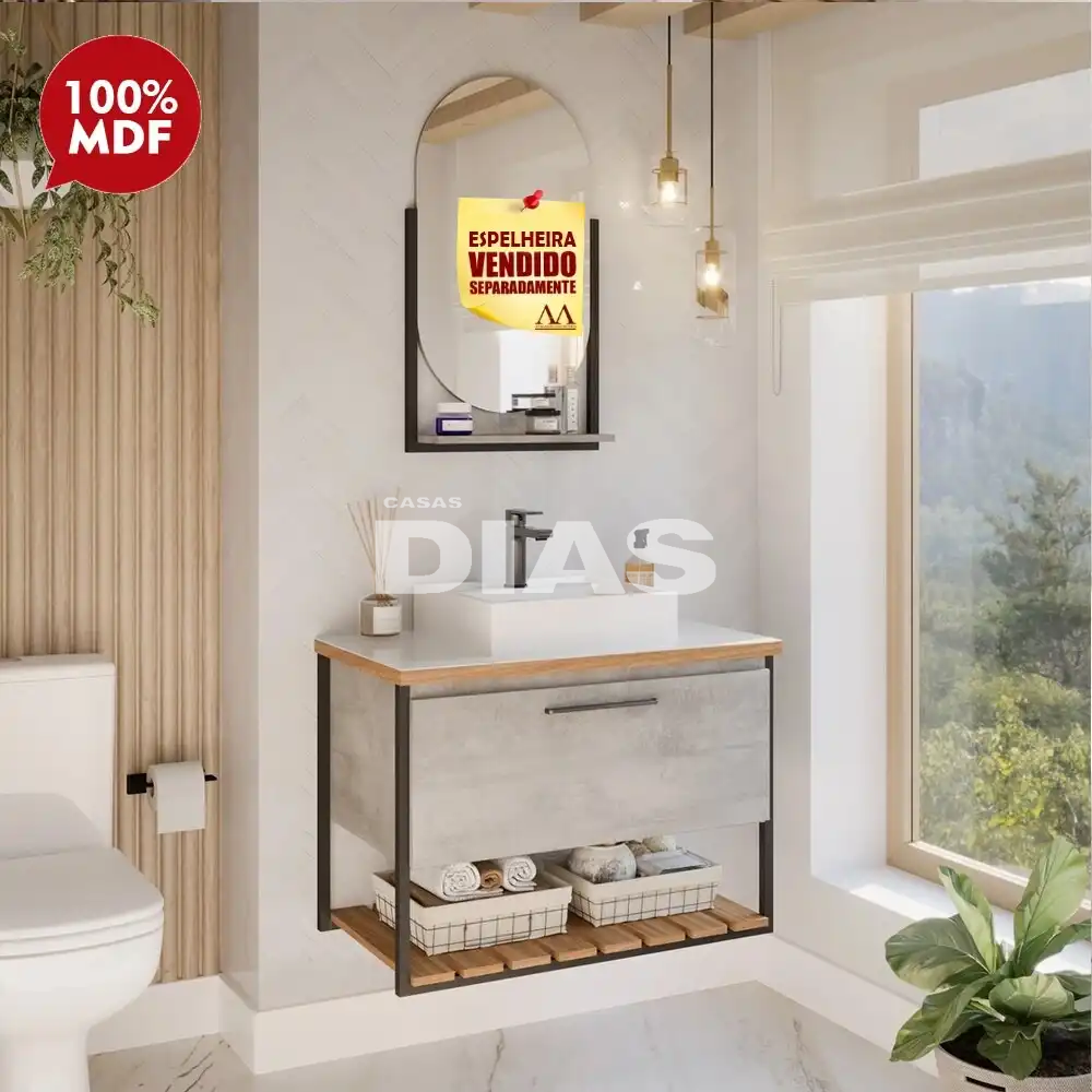 O gabinete com cuba para banheiro Caribe da Mgm é um móvel de banheiro com design inovador.
