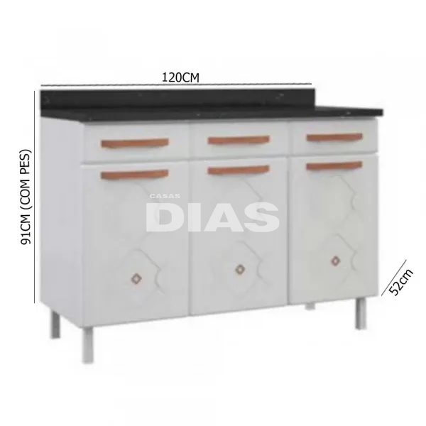 O balcão triplo com tampo New Mirage da Telasul vai deixar sua cozinha mais bonita e elegante.