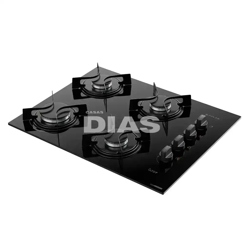 FOGAO 4B ATLAS COOKTOP UTOP MESA VIDRO ESMALTADO VP GAS PRETO