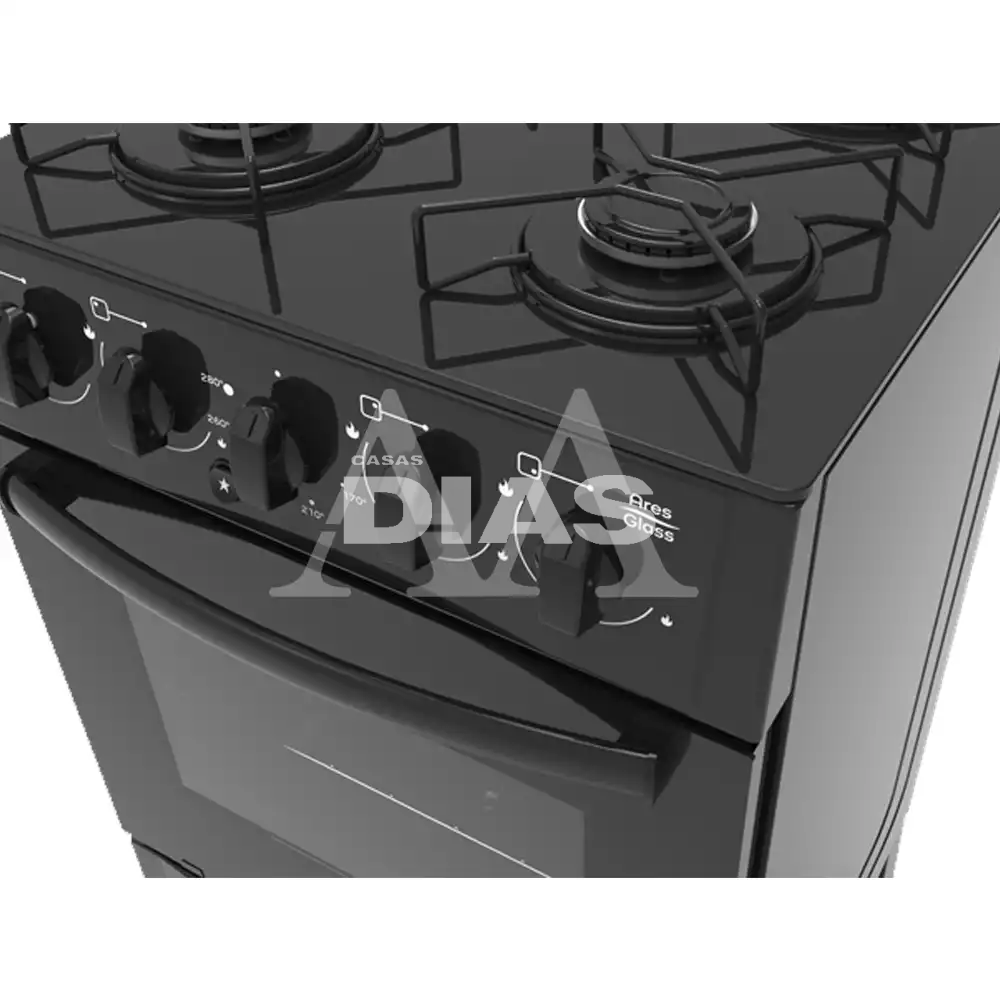 FOGAO 4B REALCE PISO ARES GLASS AUTOMATICO PRETO