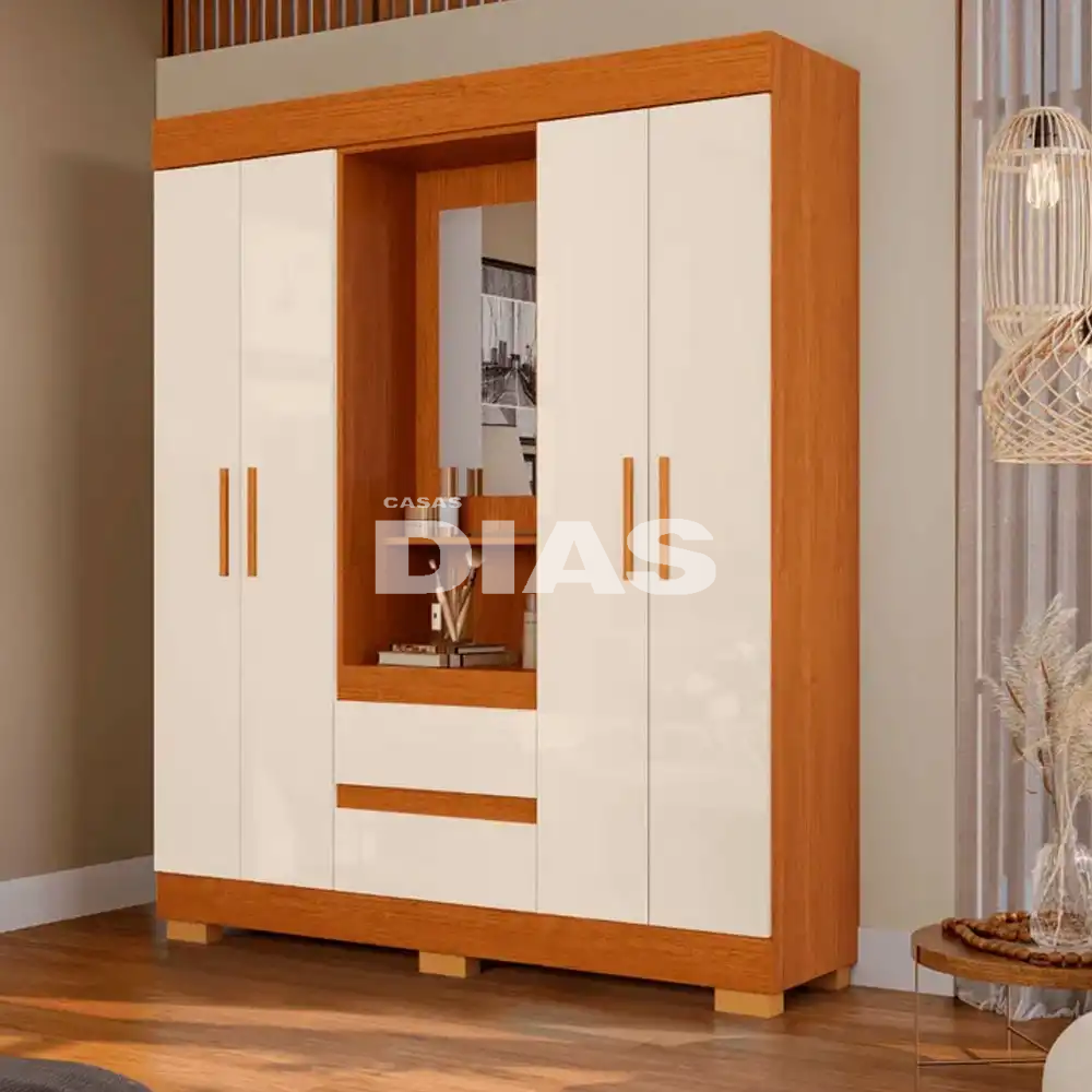 ROUPEIRO 4P ABRIR 2G C/ESPELHO ACP ISABELY CAPELINHA CINAMOMO/OFF WHIT