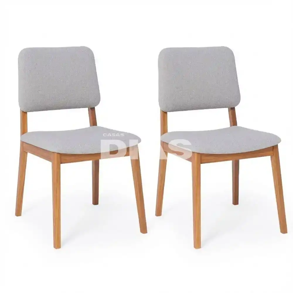 CJ 02 CADEIRAS CIMOL AMARILIS NATUAME MADEIRA/LINHO CINZA