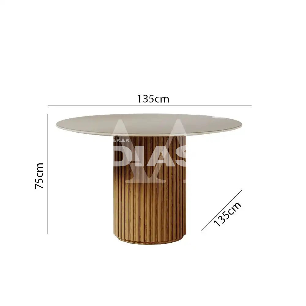MESA IMCAL LIVING 1.35 C/VIDRO REDONDA OFF WHITE/CINAMOMO