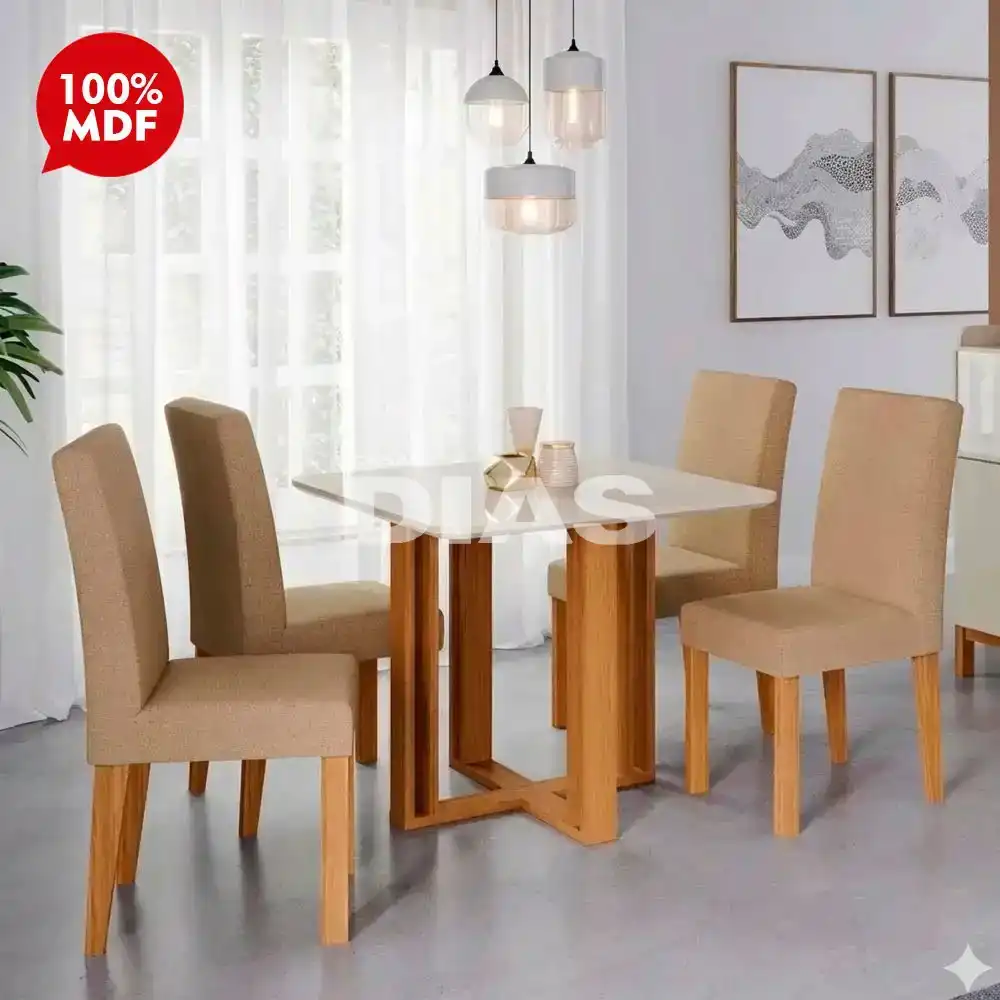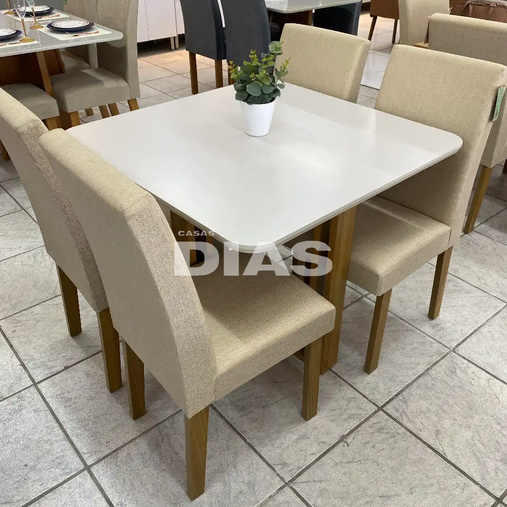 O Conjunto de Mesa Flora com 4 cadeiras Maia da Cimol dará muito charme e elegância para a sua sala. Esse produto não possui vidro.